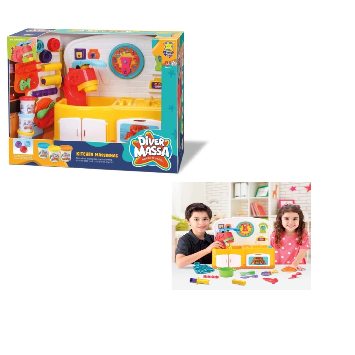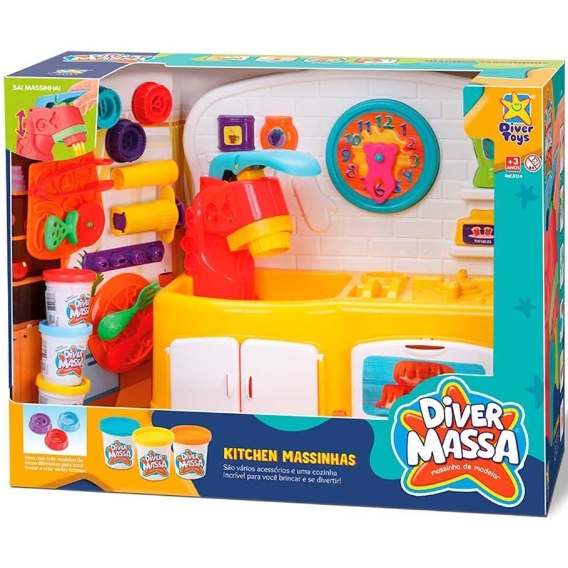 vem com 3 potinhos de massinha coloridos
